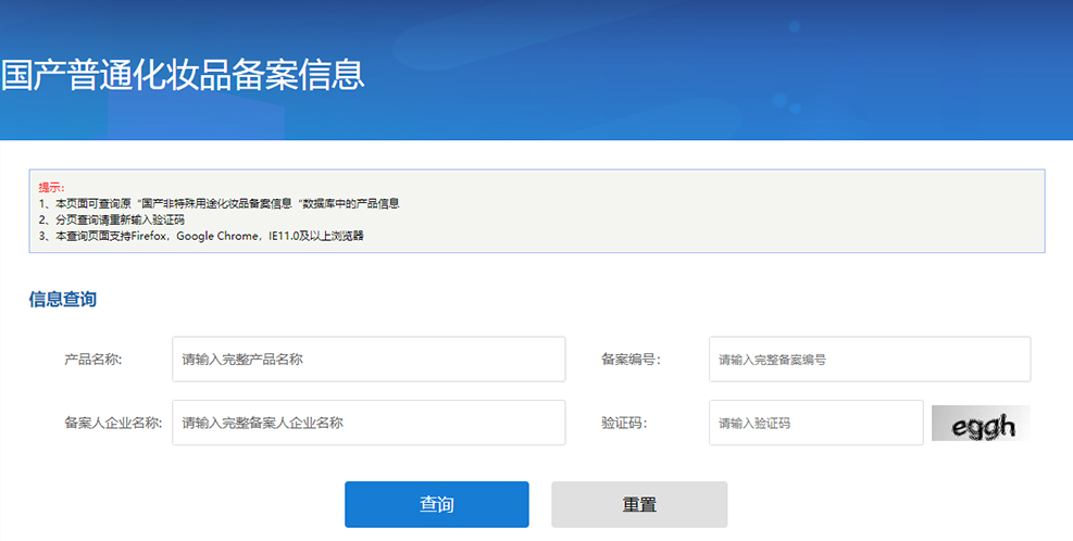查询平台——国产普通化妆品备案官网 正规国家政府部门官方网站的国产非特殊化妆品备案。 “互动” — “食药监管互动” — “化妆品” — “网上办事” — “国产非特殊用途化妆品备案” — 搜索“品牌名称”